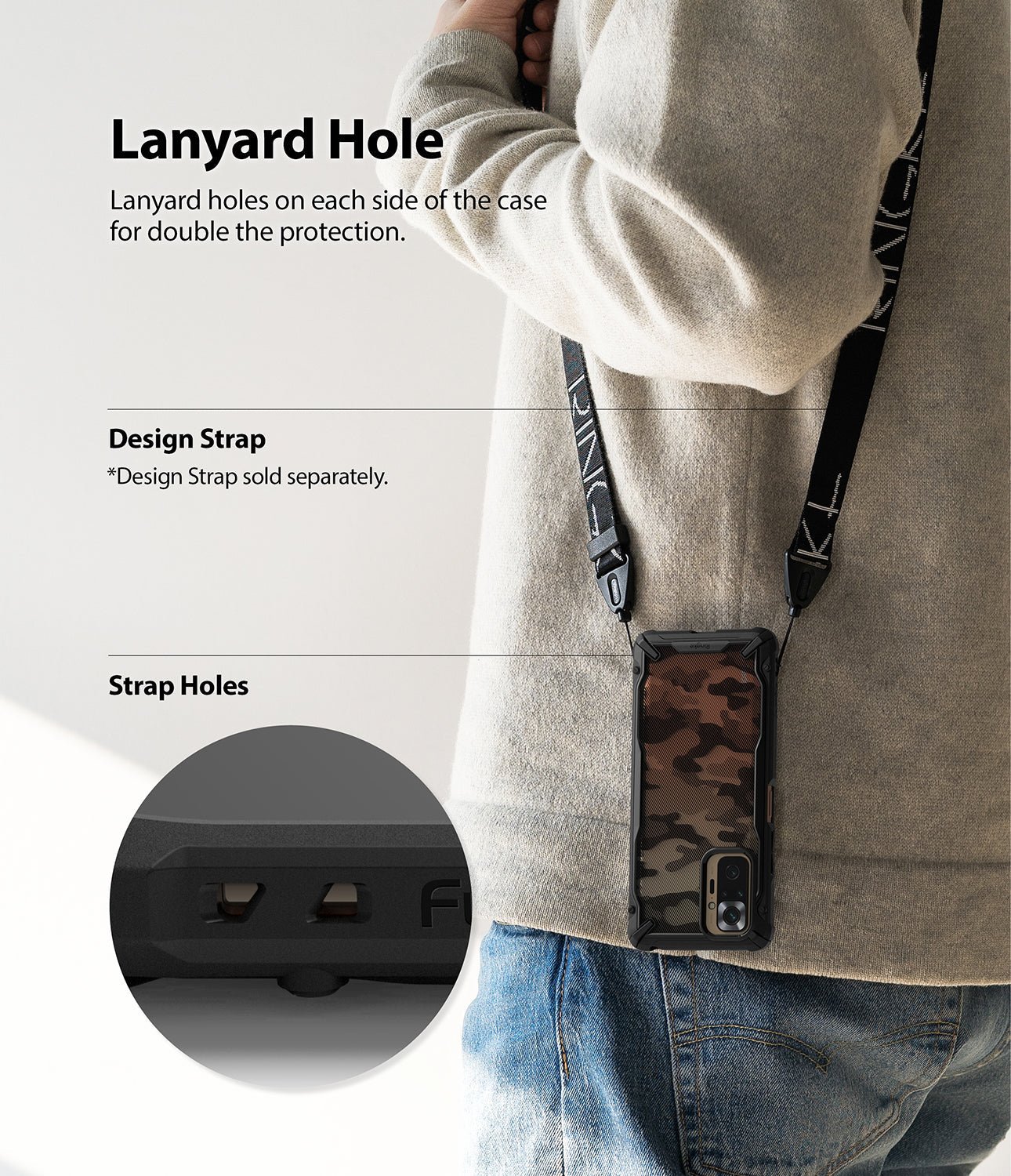 Attach wrist or neck straps with the built-in dual QuikCatch lanyard holes. (Strap sold separately)