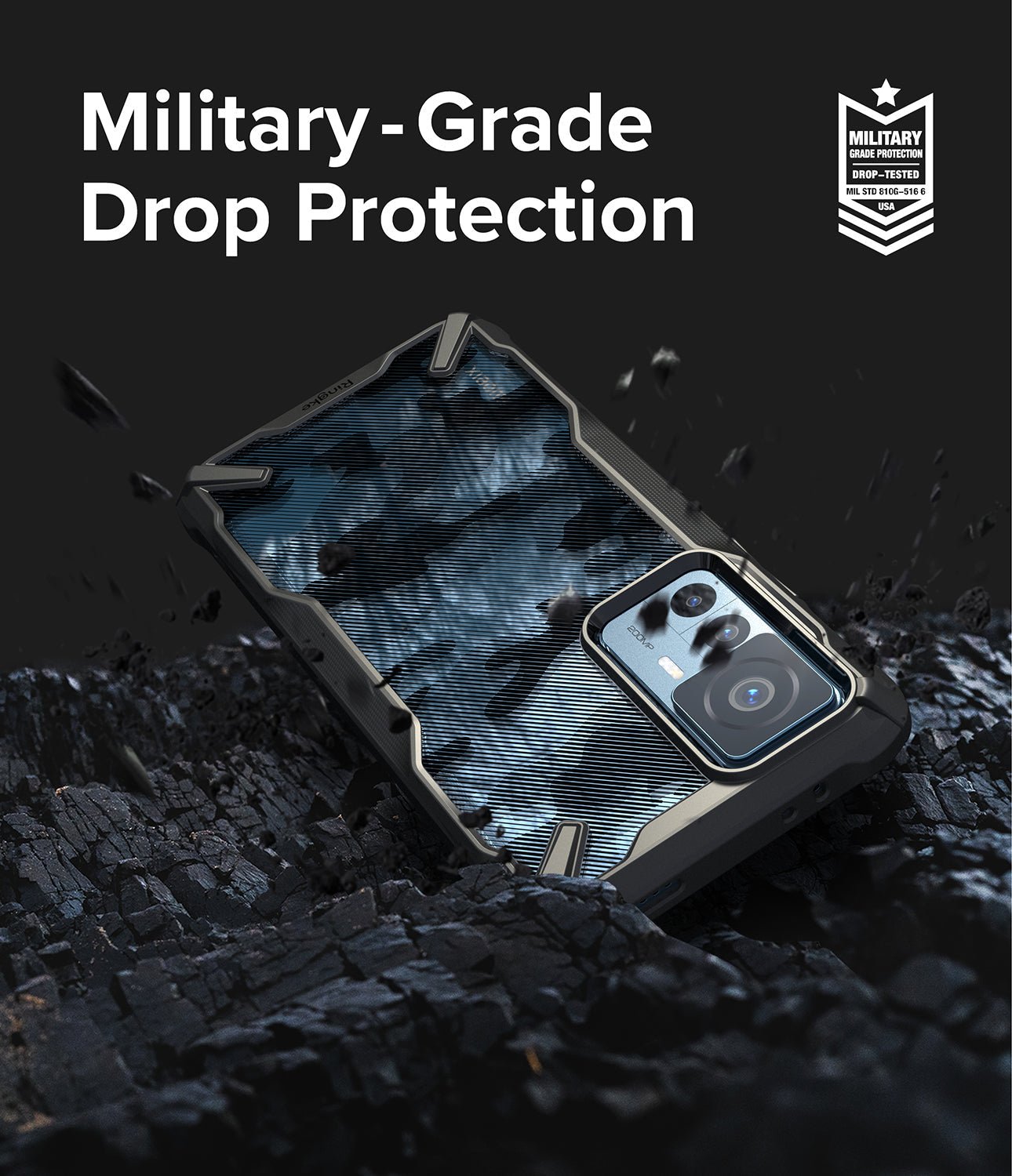 • Semi-transparent, tactile black-tone camouflage print design protection case for the Xiaomi 12T & Xiaomi 12T Pro (Camo Black)